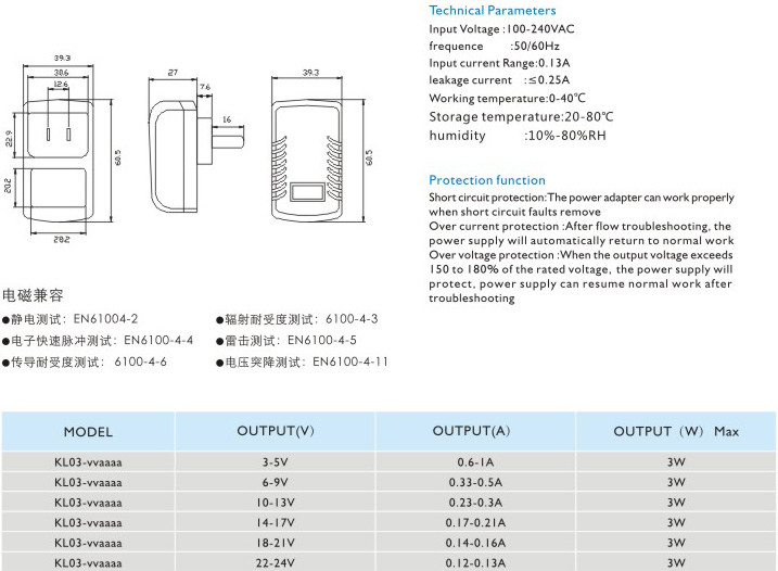 短路保護: 電源適配器在短路解除時能正常工作恢復(fù)